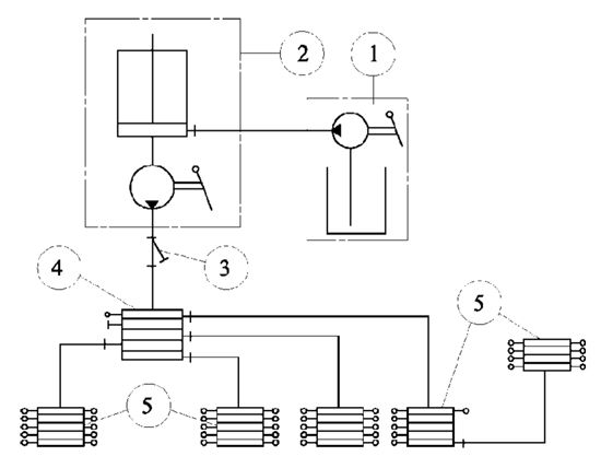3、一級分配器與管道的確定。根據二級分配器的數量和規格計算出一級分配器的型號與規格及聯接管道的管徑與走向。為了控制和監測系統的工作情況,在一級分配器上加一行程開關(或計數器)來實現。