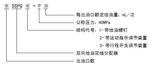 1、帶有給油螺釘?shù)姆峙淦鳎⊿SPQ1型),須按每對出油口的順序注明給油指數(shù),不注明按給油指數(shù)1供貨。