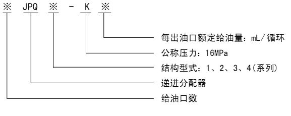1、分配器為單柱塞多片組合結(jié)構(gòu),每片有兩個出油口,分為JPQ1、JPQ2、JPQ3和JPQ4四種形式。