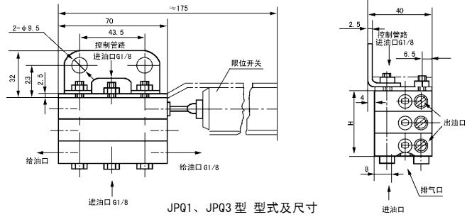 ②JPQ4型組合時需有一片控制片,此片無給油口。