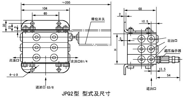 4、JPQ2型、JPQ4型分配器根據(jù)需要可以安裝超壓指示器。
