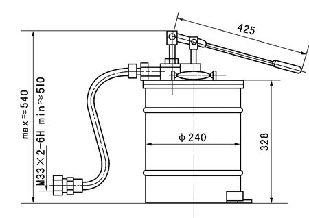 該型手動加油泵為上、下往復運動的活塞式加油泵。具有體積小,攜帶方便,使用靈活,外形美觀等特點。配備有管接頭,可直接向大、中型機械設備輸送潤滑脂,亦適用于向手動干油站或貯油器容積不大的其他干油站內填充潤滑脂。