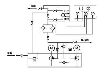 稀油站工作介質粘度等級為N22~N320的工業潤滑油,公稱壓力為0.4MPa,過濾精度0.08~0.12mm;冷卻水溫≤28℃;冷卻水壓力0.2~0.3MPa;冷卻器進油溫度為50℃,溫降7~8℃;使用蒸汽加熱時蒸汽壓力為0.2~0.4MPa。